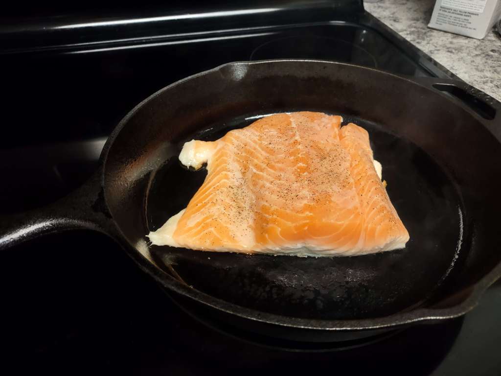 Trying to get some more nutrients in while keeping to my diet plans. Tried to do some crispy skin pan seared salmon and it turned out alright (I think.) I ate it after all.