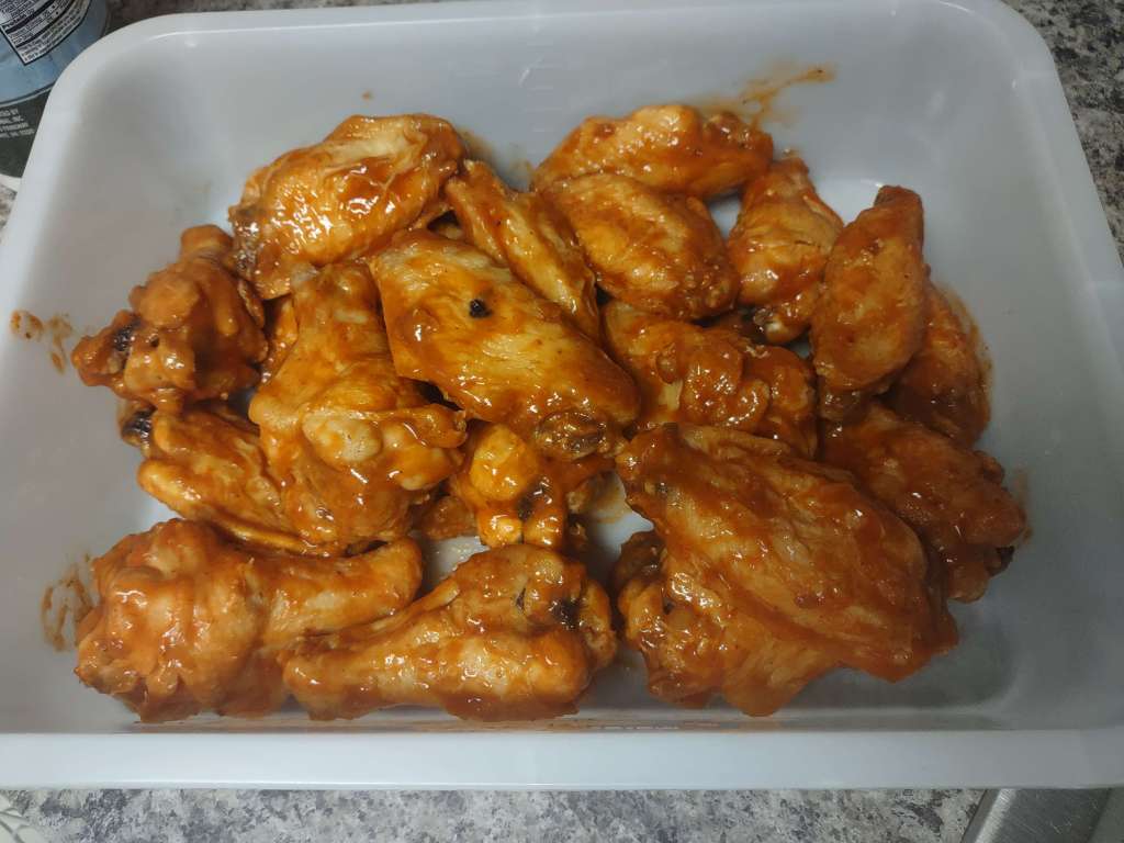 That’s where batches come in handy because it means that I can reliably make sure that a batch is good to go because each one had a decent amount of cooking time everywhere since I don’t think I had enough shortening to make a full deep fry environment. I had to flip shit every time. Once I was finished and all the wings were good to go, I tossed some honey bbq sauce with some sriracha and gave it a good mix and it was pretty tasty. I still have some that I might just eat for lunch tomorrow but good work. Only thing is the place reeks of shortening but it’s not really an unpleasant smell. Perhaps “reeks” was the wrong word to use, but it definitely is noticeable when you walk into the area and the scent smacks you. Also cleaning up oil is a bitch. I would make a joke about it not being my problem and just pouring it down the drain, but I’m not a fucking neanderthal.