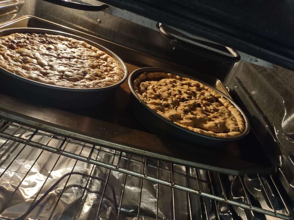 For my friend’s dad’s birthday party (which happened a week ago, good thing I remembered something that happened so long before,) I tried making a cookie pizza, a pizookie or whatever the fuck that portmanteau is called, and stuffing it with Nutella. Sorry, hazelnut spread because I used the generic brand and not the Nutella (trademark symbol or R in a circle symbol) named brand. The cookies itself weren’t anything special, I just bought some cookie dough that came in that little plastic wrap thing that looks like what you would get sausage or ground beef in, and I’ll be honest, I don’t think I bought enough dough. Trying to do with what you have is kinda daunting because trying to shape the top to cover the spread is a lot more challenging than I thought, but at least at the end of the day, it came out fine and everyone at the party demolished that shit. Definitely make sure to let it cool before cutting because it will be way easier to do so and you won’t burn your mouth with lava temperature hazelnut spread.