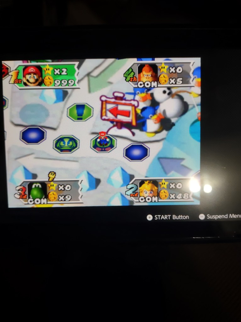 So with the Switch online thing that includes a bunch of older games, there is a function to rewind or create save states for the games which allows for some genuine cheating and gaming the system, often to a severe degenerate level. As you can see, I am showing Mario Party who is the boss by rigging dice rolls and minigames with high risk high reward ratios such as anything involving a casino. It’s honestly just hilarious in my mind to do these kinds of things but I will say if you get tok enveloped in your own nonsense it makes something that should only take half an hour end up taking a fucking total of two or more hours because you end up obsession over maximizing rather than just making sure you are secure with your win.