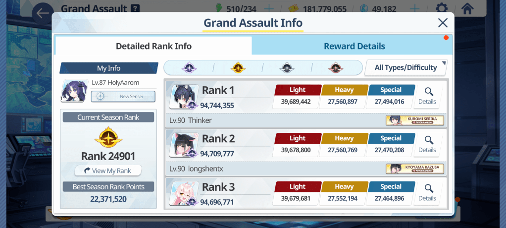 This was certainly a surprise because I’ve never really been one to take this game super duper seriously but I guess over time I’ve started to build up my characters to be strong enough to reach the threshold to hit this rank. The cutoff is at 25,000, so I think I did good just barely scraping by so that means all I can do is just hope that I’m going to be doing a lot better next time this event happens since it’s sort of sparked a bit of interest back into this even though I really am more preoccupied with GFL2.